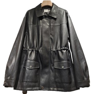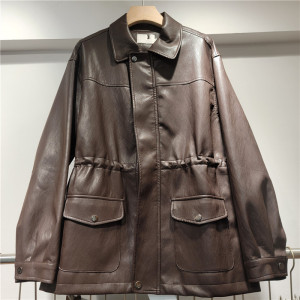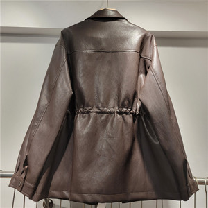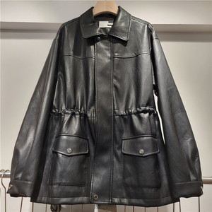 PU皮质外套女2025秋季新款设计感抽绳收腰宽松机车夹克上衣潮