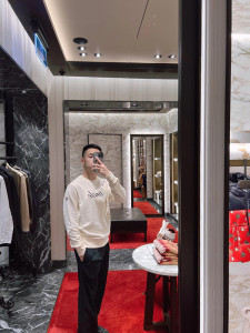 正确版秋季字母刺绣圆领袖标卫衣时尚简约经典百搭男女款套头上衣