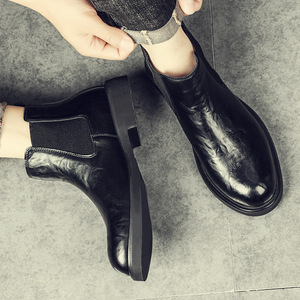 切尔西靴男英伦风百搭一脚蹬擦色软皮男靴中帮短靴男鞋马丁靴