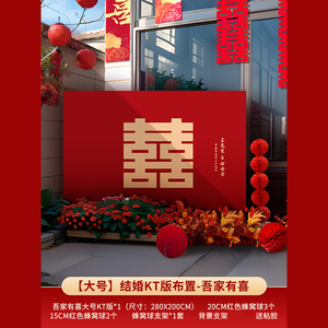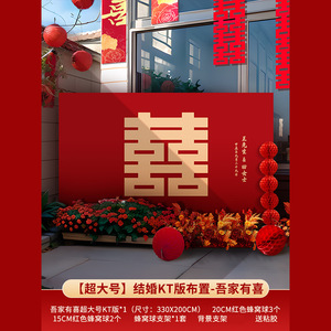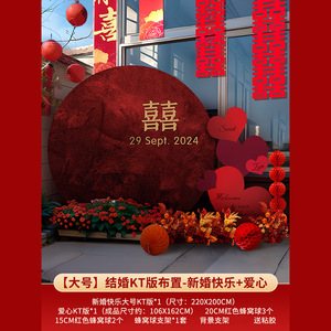 氛围装饰网kt板布置红拍照场景婚庆中式婚礼大气豪华感背景墙订婚