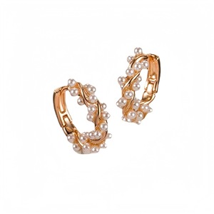 珍珠花朵耳环(玫瑰金色)镀真金保色环保