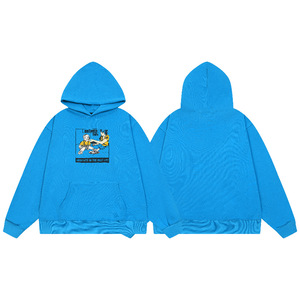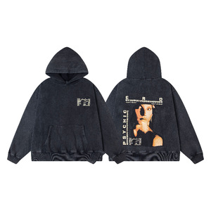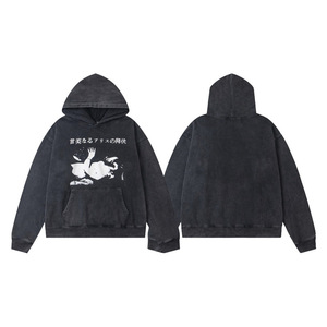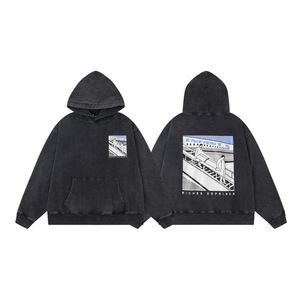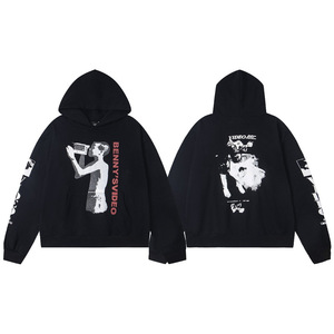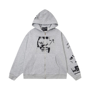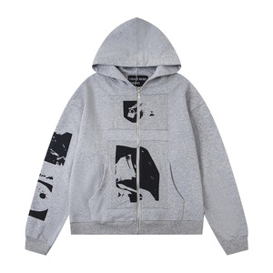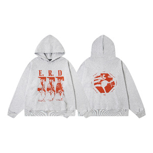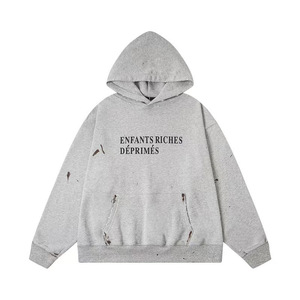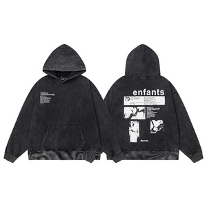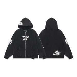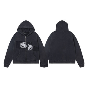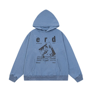 ERD忧郁的富二代复古水洗破洞贴布印花宽松男女连帽卫衣拉链外套