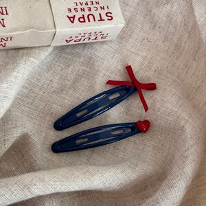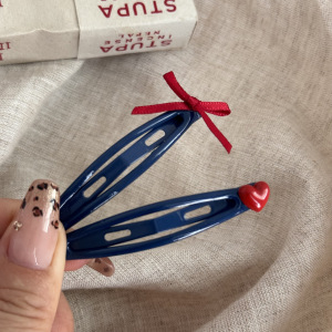 韩系深蓝色百搭蝴蝶结发夹侧边刘海夹爱心红色BB夹掰掰夹头饰发饰
