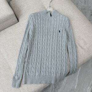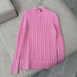 原标可扫码拉夫半拉链麻花针织衫小马刺绣男女同款半开领长袖毛衣