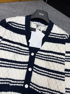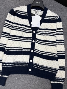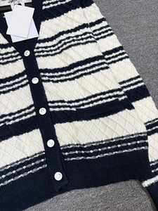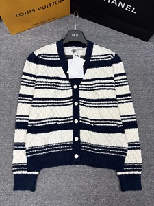 V领毛衣洋气简约宽松外搭气质毛衫条纹长袖羊毛针织开衫女短外套