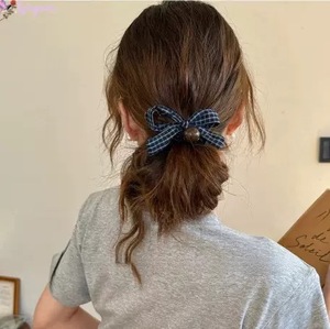 韩系新款格纹蝴蝶结发圈气质温柔百搭复古发绳高弹力珍珠皮筋发饰