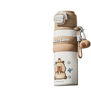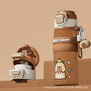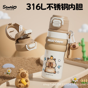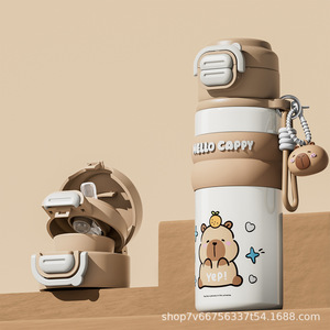 卡皮巴拉保温杯儿童水杯学生上学专用吸管杯女孩2025新款双饮杯子