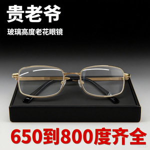 贵老爷金属框架超高度数玻璃水晶耐磨老花镜650 700 750800度批发