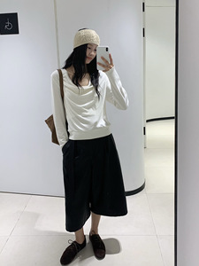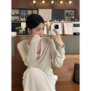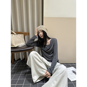 2025早秋韩版通勤风百搭荡领打底针织衫女新款十三行套头修身上衣