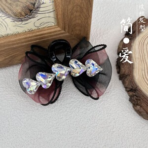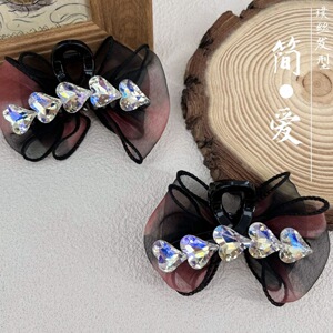 森系时尚气质 AB面爱心月光水钻泡泡纱抓夹7cm