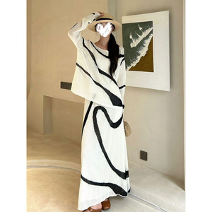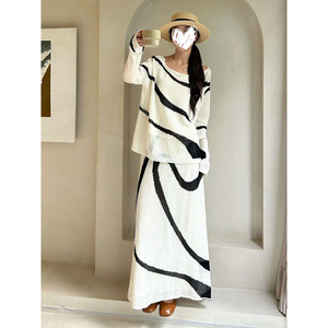 法式清冷感针织长袖防晒罩衫上衣女2025新款休闲半身裙两件套装裙