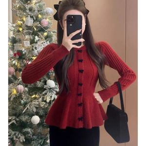 过年穿搭喜庆红色蝴蝶结毛衣女秋季2025大码胖mm超好看针织衫上衣