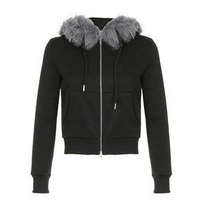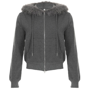 美式复古宽松纯色加绒保暖双头拉链开衫卫衣秋冬连帽毛毛拼接外套
