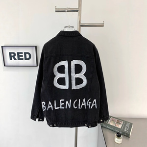 外贸跨境巴黎b家秋冬新款 双B涂鸦印花牛仔夹克外套情侣款一件发