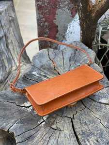 纯手工制作皮具 单肩腋下真皮麻将包植鞣牛皮手拿包高级感女包