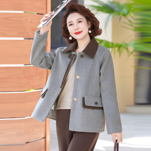 中老年女秋装短款毛呢大衣中年妈妈开衫外套秋冬新款洋气大码上衣