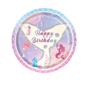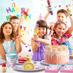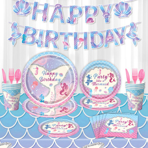 亚马逊紫蓝色美人鱼生日派对装饰道具周岁布置用品渐变色纸盘桌布
