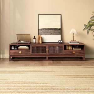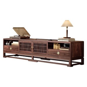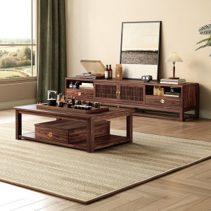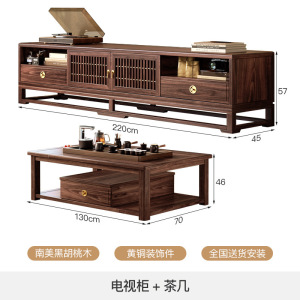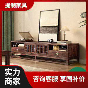 新中式实木电视柜高款黑胡桃木简约客厅家用茶几电视机柜组合地柜