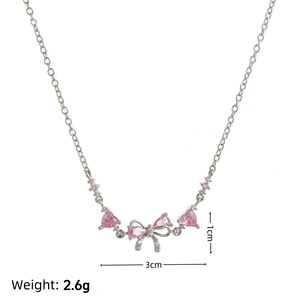 新款跨境S925银蝴蝶结手链女小众高级感轻奢粉色锆石纯银手链批发