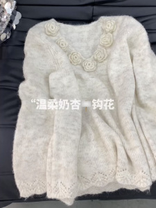 原创正版!山茶花钩编针织上衣女喇叭袖秋冬新款温柔时尚百搭