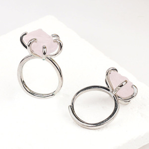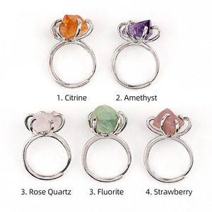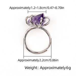 2342-欧美跨境新品天然紫水晶戒指复古水晶原石六爪铜托开口指环
