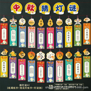 中秋节灯谜字谜条卡片节日猜灯谜纸卡吊卡布置节日商场游园会字条