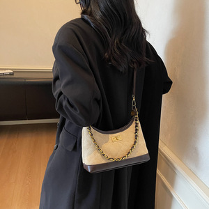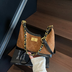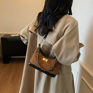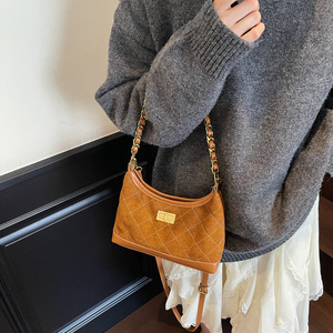 小众复古质感手提包包女2025新款麂皮绒菱格链条包简约单肩斜挎包
