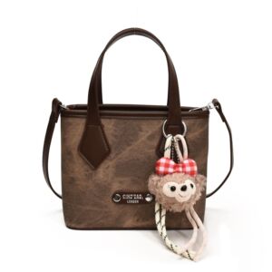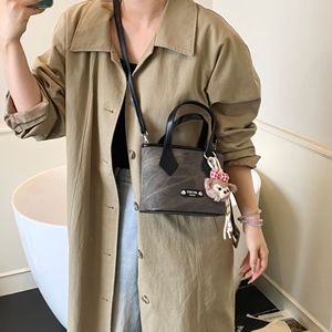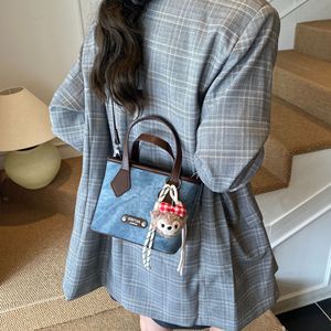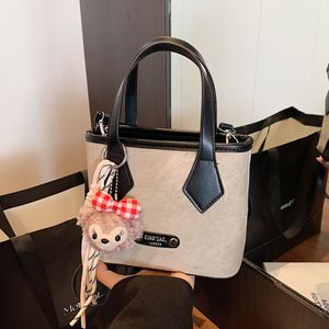 韩版小众手提水桶包女2025秋季新款时尚撞色单肩包复古通勤斜挎包