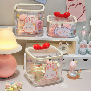 按压式桌面儿童发饰盒收纳盒收纳大容量带盖贴纸透明清洁家用卧室