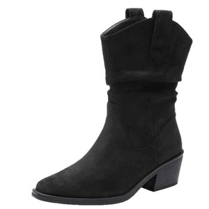 牛皮版~赵露思同款尖头堆堆靴短靴子高跟复古西部骑士靴V口中筒靴