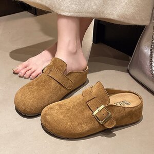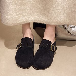 懒人一脚蹬博肯鞋女2025秋季新款复古包头半拖小个子厚底增高拖鞋