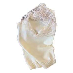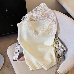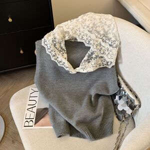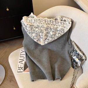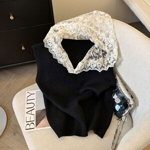 拼接新款慵懒上衣毛衣背心设计韩系蕾丝马甲接连连帽针织衫秋冬
