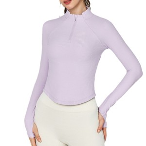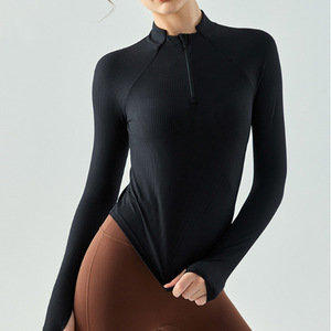 新款修身长袖瑜伽服上衣显瘦休闲气质小立领半拉链健身服外套