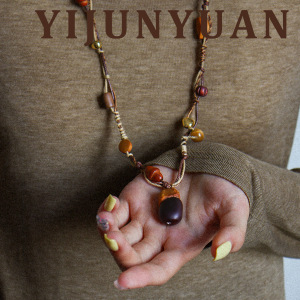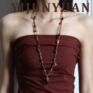 新款复古金虎眼石缅茄果长款项链配饰女轻奢小众高级感编绳毛衣链