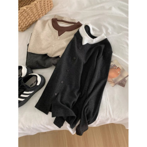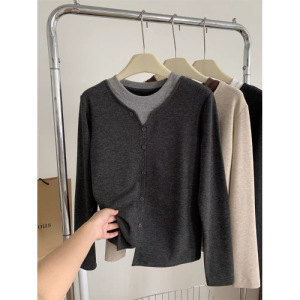 官图秋季新款特大200斤绵羊绒单排扣假两件百搭长袖T恤女上衣