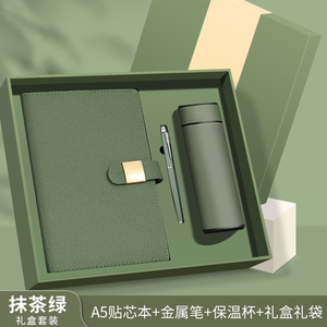 A5-抹茶绿-哑金方扣【保温杯礼盒套装】