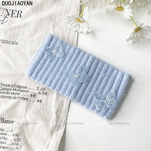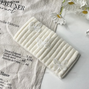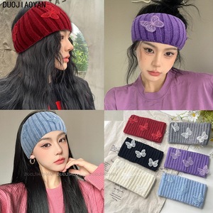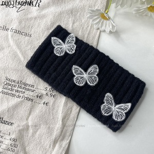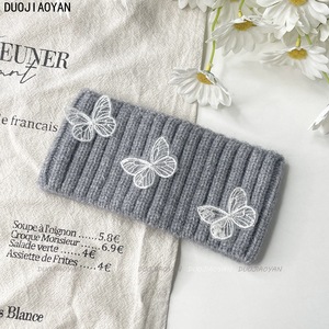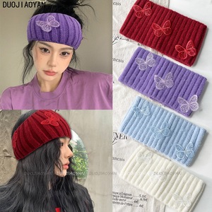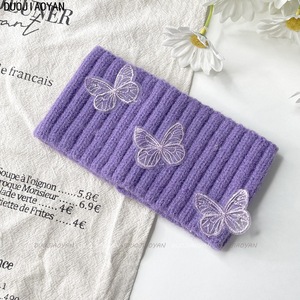 秋冬时尚新款毛线发带仿真蝴蝶防风配饰宽边北极绒保暖防寒头饰女