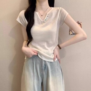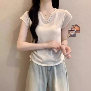 白色冰丝短袖t恤女2025新款夏季竹节棉上衣高级感小众不撞款小衫
