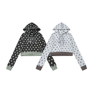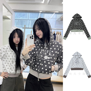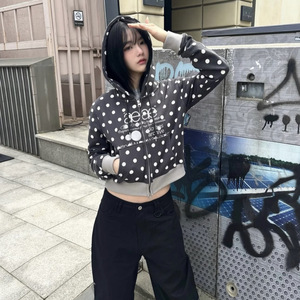 韩国小众aeae短款卫衣连帽波点字母刺绣拉链开衫外套秋冬潮牌新款