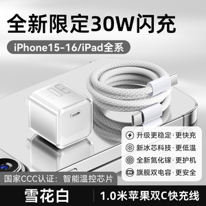 【15-16套装】30W雪花白+1.0米双C快充编织线