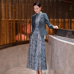 首尚格释2025秋季新款时尚西装外套两件套新中式立领连衣裙套装女