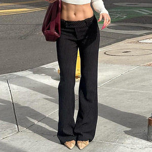 气质御姐风条纹低腰微喇梭织裤ins潮流修长形休闲长裤2025夏季款