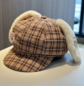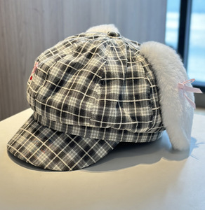 甜美格子可爱毛绒绒兔耳朵八角帽子女秋冬季保暖显脸小贴布鸭舌帽