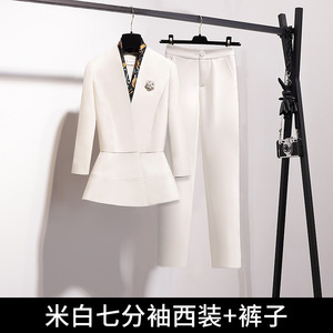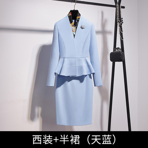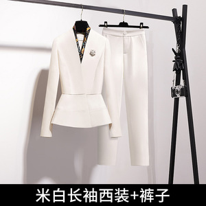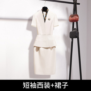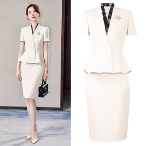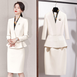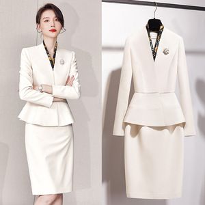 职业女裙套装米白色高端西装外套女西服时尚酒店经理美容师工作服