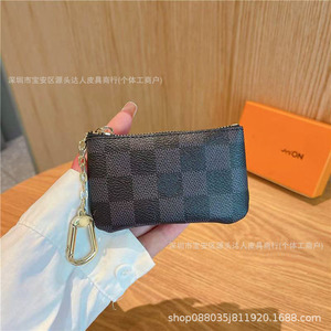 大牌老花原皮格子高贵经典钥匙包零钱包女爆款包高档气质拉链钱包