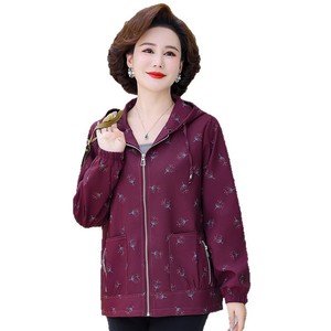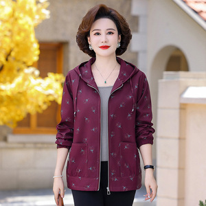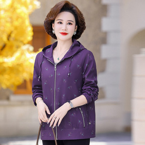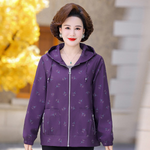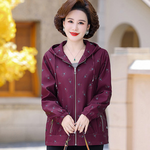 奶奶秋装连帽风衣外套新款中老年人女休闲宽松上衣妈妈春秋夹克衫
