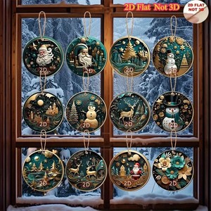 跨境圣诞节木质圆形套装挂件用于布置家居派对木制装饰品2D平面