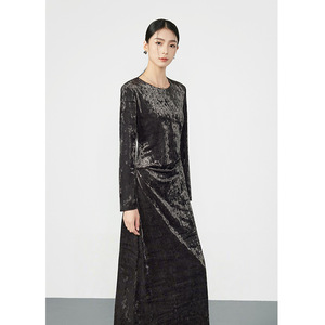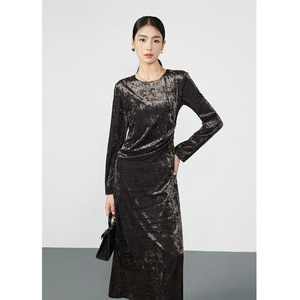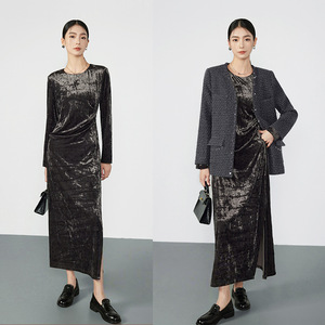 老钱风复古丝绒收腰显瘦连衣裙女2025秋季新款高级轻奢优雅中长裙