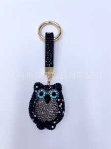 跨境新款钥匙扣挂件卡通猫头鹰挂饰陶泥镶钻书包背包饰品配件批发
