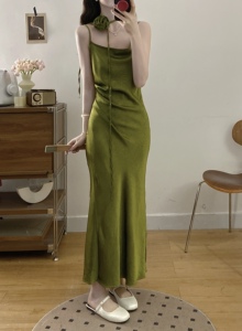 大码胖mm绿色吊带连衣裙女夏季醋酸缎面长裙防晒披肩上衣两件套装